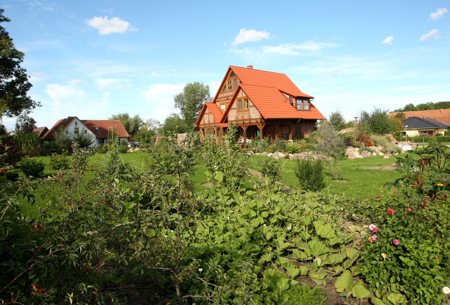 ERDGESCHOSS: Haupteingang im Osten, zurückgesetzt - Diele, Gäste- WC mit Dusche, Hauswirtschaftsraum mit Nebeneingangstüre, Wohnzimmer und Wohnküche mit Essbereich, Stützen aus Eichenholz mit dekorativen Kopfbändern, der Kachelofen ist klassisch Raum teilend zwischen Wohnstube und Küche, behaglich, Eichen- Holz- Treppen bis in den Spitzboden. Man tritt in das Haus, es umfängt einen ein rustikale Gemütlichkeit, rustikale Holzbalkenlage, komfortable Raumhöhe (bis Oberkante Balken 2,80 m), Landhaus(innen)türen als Klaspentüren aus Vollholz individuell gefertigt. DACHGESCHOSS: große Galerie, helles, großzügiges Wannen- und Duschbad, geräumiges Ankleide-zimmer und 3 Schlafstuben SPITZBODEN, zum Studio ausgebaut - ein weiteres Highlight dieses Hauses. Festverglaste Studiogiebel ermöglichen den Blick weit hinein in die mecklenburgische Landschaft. (zusätzliche Wohnfläche ca. 25 m²!) Garten gestaltend teilw. Ziegel- und Natursteinmauern, portalartige Hof- Einfahrt zum u.v.m.