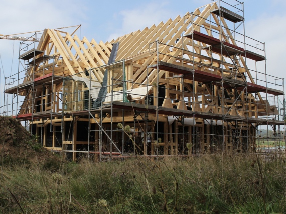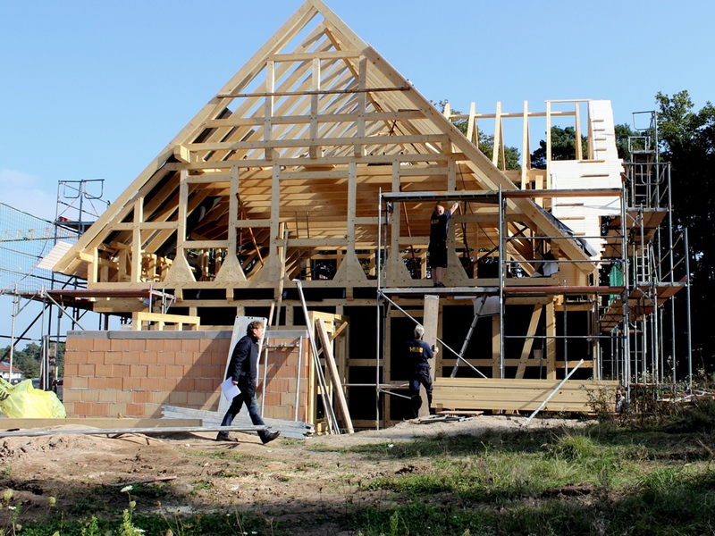 Balkenlage: Vollholz im EG, sichtbar im EG und DG