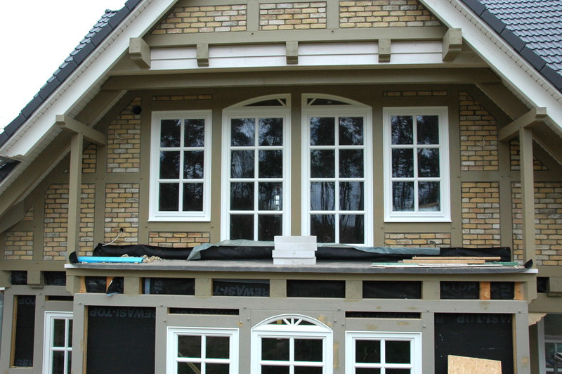 Drei-Giebel-Haus, Dachneigung ca. 47°, Satteldach, Schleppgauben, Loggia