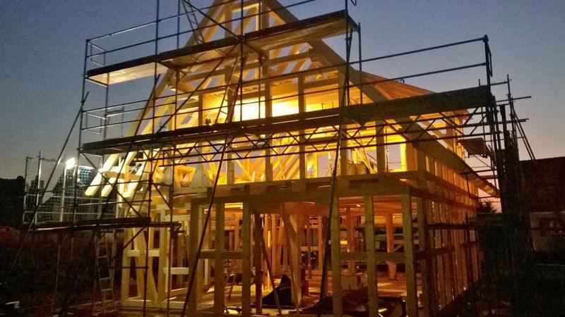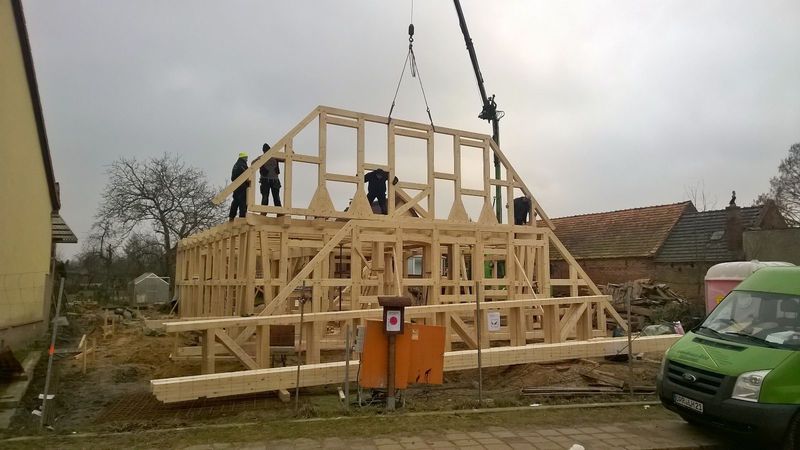 Februar 2017- Das Fachwerk wird gerichtet