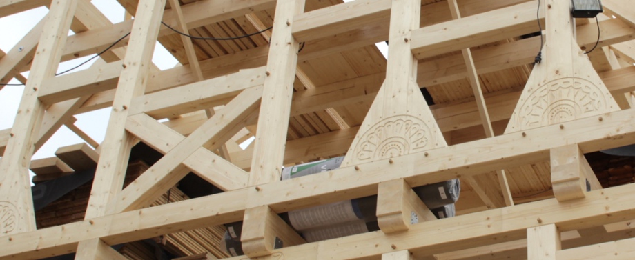 Fachwerk: Leimholz, traditionell gerichtet,