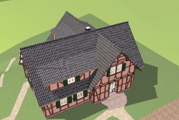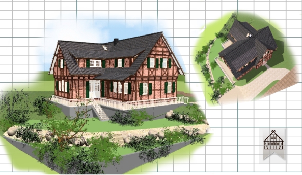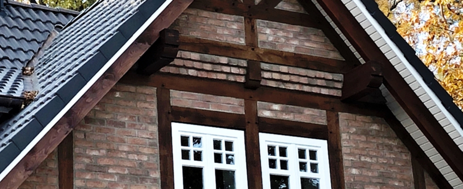 Fachwerk: Eiche, traditionell gerichtet ausgefacht mit Vormauerziegel