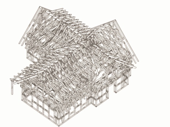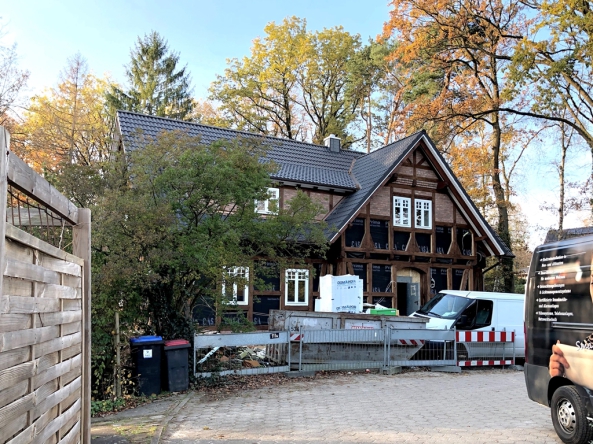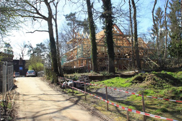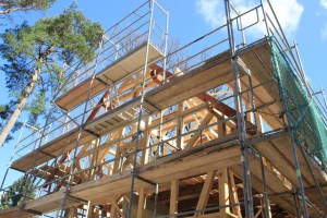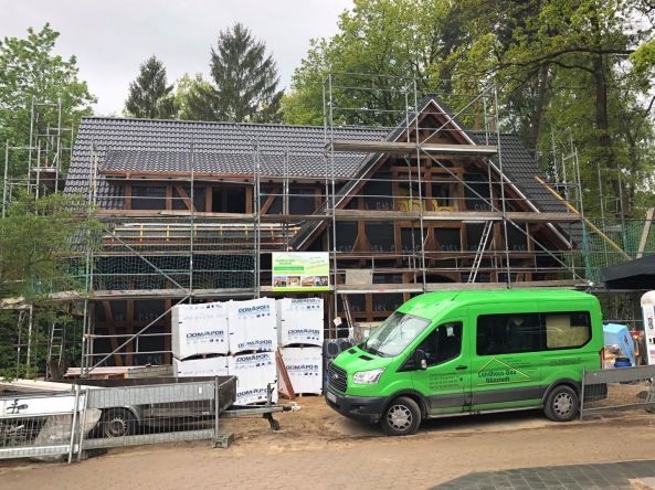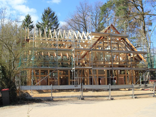 Baustelle im März 2019- Das Eichen-Fachwerk wird gerichtet.