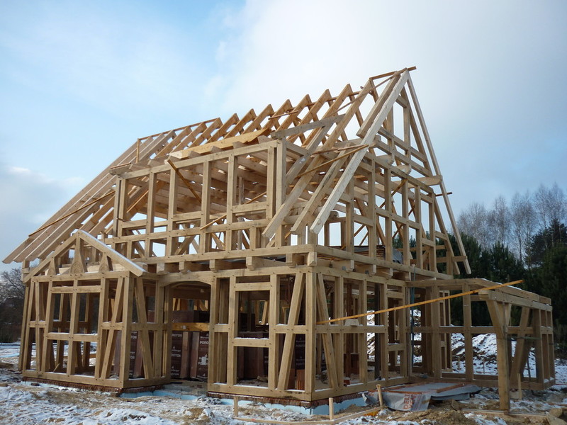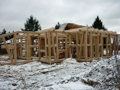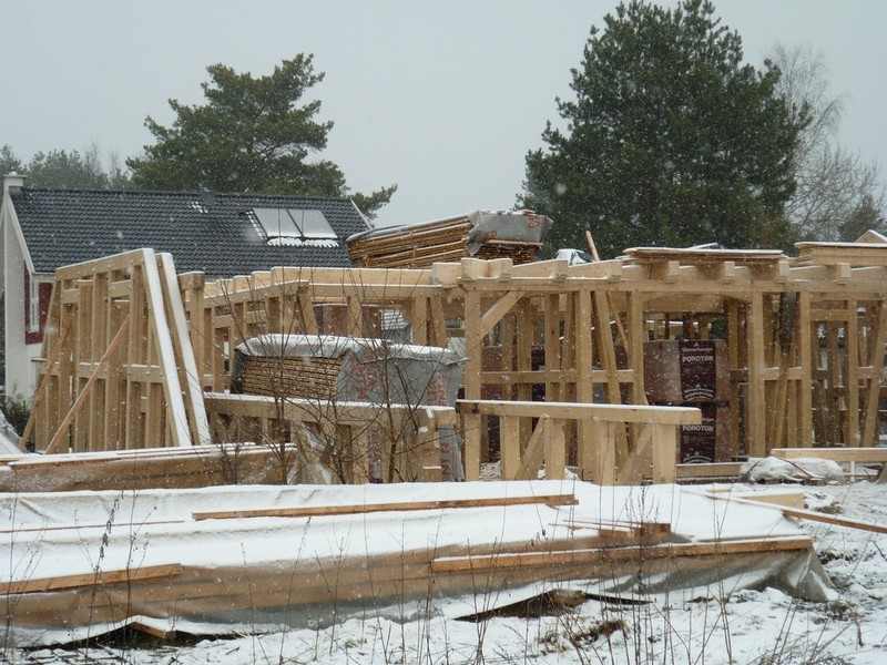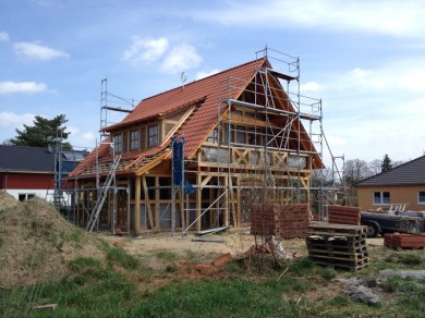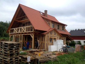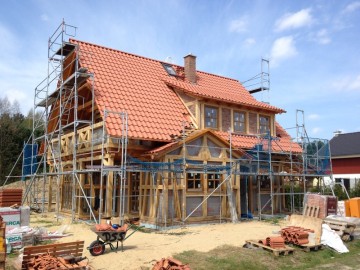 Januar 2013- Das Eichen-Fachwerk, der Dachstuhl werden gerichtet.