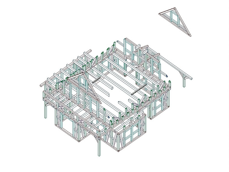 Abbund (Detail)- Eichen-Fachwerk, Balkenlagen, Dachstuhl
