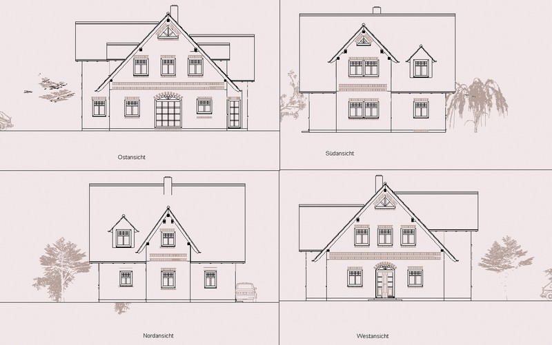 Dachneigung ca. 47° Viergiebelhaus, zwei Gauben