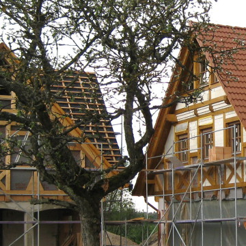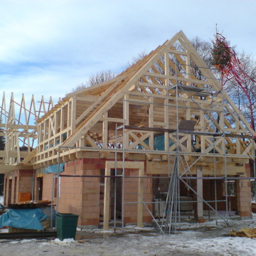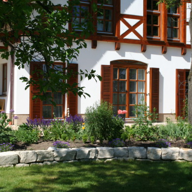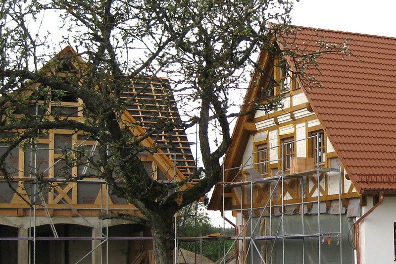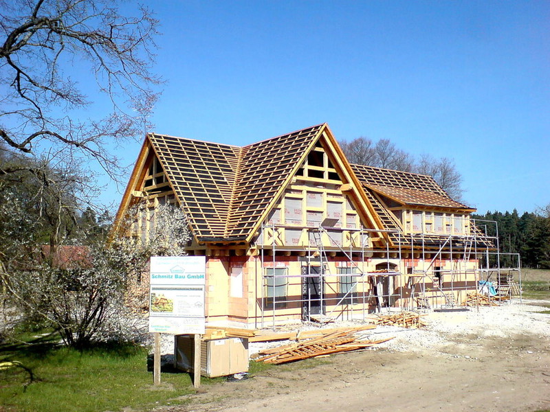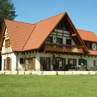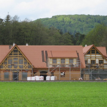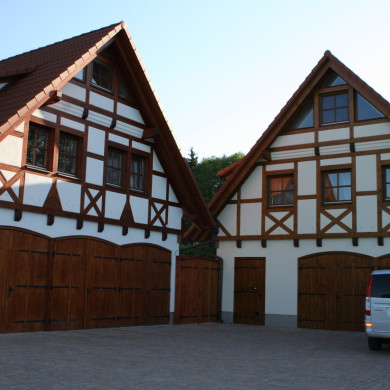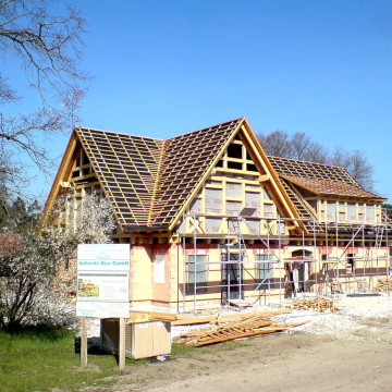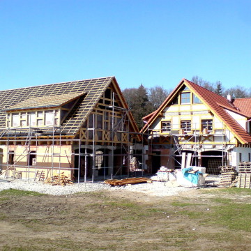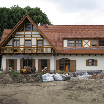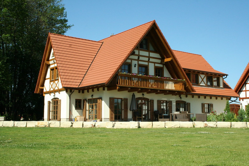 Hof, bestehend aus zwei Einfamilienhäusern im Landhausstil und Nebengebäuden / Baujahr 2009-2010 / Entwurf: Dipl.-Ing. Ingolf Christianus, Kremmen / Bauunternehmen: Schmitz Bau, Glinstedt